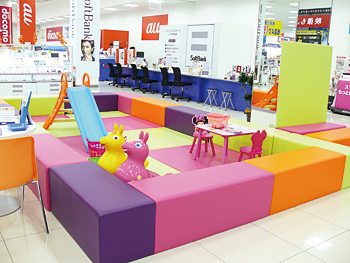 平日・休日を問わず、幼児を連れて来店するお客様が多いことから、キッズスペースを2か所設置。ビジネスに直結しないスペースだが、「とにかくお子さんが多い。お客様がお子さんを自由に遊ばせて、しっかり商品説明を聞くことができる環境を整えたいと考えて2か所にした」という。また、「買い物に疲れた方が休憩できるように、売り場内の休憩用ベンチを他店よりも多く設置している」。このような取り組みは、「お客様が気軽に来店するようになり、間接的に収益を生むことにつながる」という。