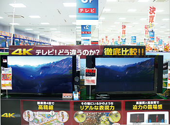デモンストレーションや接客で心がけているのは、「商品の本当のよさを伝えること」(佐藤執行役)だ。そのために、デモも接客も、新旧製品やライバル製品同士の機能比較に力を入れている。例えば、4Kテレビで新モデルと旧モデルを並べて画質の違いを訴えている。接客では、各メーカーの商品を徹底的に調べて、お客様に適した機種を提案。メーカー派遣スタッフが多い店舗では、派遣スタッフが自社製品だけを勧めるケースが多くみられるが、ノジマはアルバイトを含めて、すべてのスタッフを自社で採用している。商品の違いを中立の立場から説明しているという。「『違いを聞きたい』というお客様は非常に多い。その要望にしっかり応えるために勉強している」と佐藤執行役が言う通り、商品知識が豊富なスタッフによる接客が強みだ。オープンから日がたっていないことから、現在は新規のお客様が多いが、こうした接客によって「リピーターを増やしていく」(佐藤執行役)ことを目標に掲げる。