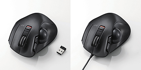 エレコム、手の乗せ心地にこだわったワイヤレストラックボール「M-XT1DRBK」、有線モデルの「M-XT1URBK」も