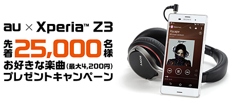発売と同時に実施するキャンペーンでは、「Xperia Z3 SOL26」購入者先着2万5000名に、音楽ダウンロードサービス「mora」で、お気に入りの楽曲やアルバムに使えるクーポン4200円分をプレゼントする。au Online Shopでの購入や、法人は対象外。キャンペーン終了日は、別途、キャンペーンサイトで告知する。