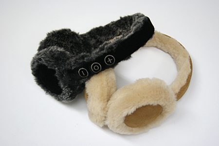 フワフワ、モコモコしたイヤーマフラータイプのヘッドホン。Bluetoothでスマートフォンなどとワイヤレス接続するので、バッグやポケットにスマートフォンなどを入れたままで音楽が再生できる。また、コードの絡まりがなく、快適に音楽が楽しめる。ヘッドホン側で「音量調整」「再生」「一時停止」「曲を進める」などの操作ができる。