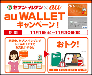 11月1日から30日まで「セブン-イレブン×au au WALLET キャンペーン」を実施