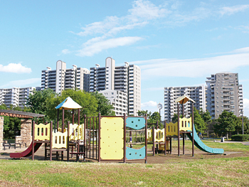 新浦安は高層マンションが建ち並び、公園が整備されている