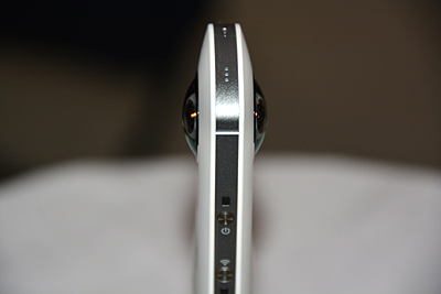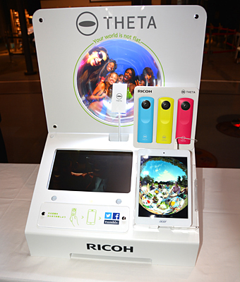 2013年11月発売の「RICOH THETA」は、二つの魚眼レンズを搭載し、撮影者を囲む全天球のイメージを簡単に記録できるカメラ。Wi-Fi経由でスマートフォンに画像を転送し、専用アプリ「RICOH THETA for Android」「RICOH THETA for iPhone」上で、指先でサイズや形、構図を変えて楽しむことができる。