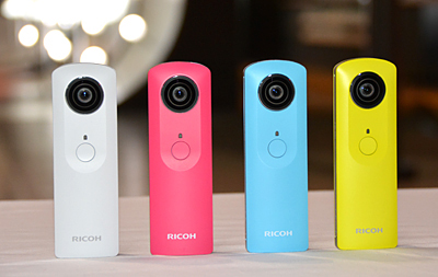 リコー、全天球カメラ「THETA」が動画に対応、4色のカラーバリエーションも
