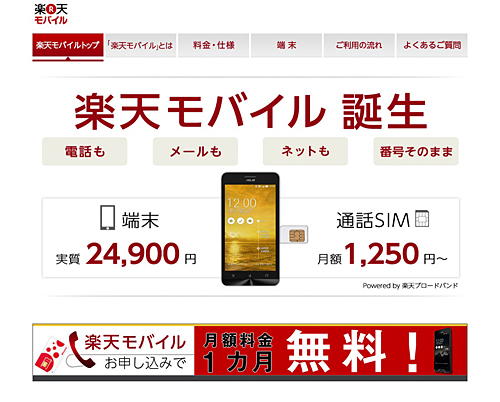 フュージョン、格安通話サービス「楽天モバイル」の提供を開始、SIMカードとSIMフリー端末のセット提供も