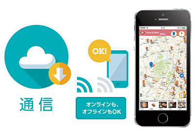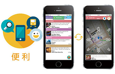 有名な観光スポット、グルメ、ショッピングをジャンル・地図から探し、方向案内で簡単にナビするほか、お気に入りに登録することで自分だけの観光プランをつくることができる。オンライン状態でダウンロードした情報はキャッシュされるので、通信環境がなくても、地図・観光情報・便利情報を活用できる。