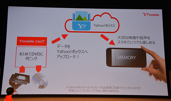 全国のワイモバイルショップでサービスを受け付ける。データ化した映像などは、DVD化のほか、オンラインストレージ「Yahoo!ボックス」に保存することもできる。なお、ユーザー自身が権利を有していないテレビ番組や映画、音楽などは、サービスを利用できない。料金は、10~19本までが1本あたり1480円、20~40本までが1本あたり1280円。