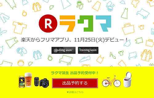 楽天は、スマートフォンで個人間の売買取引ができるフリーマーケットアプリ「ラクマ」のAndroid版を11月25日、iOS版を近日中に提供を開始する。出品の予約受付けは、11月17日に開始した。