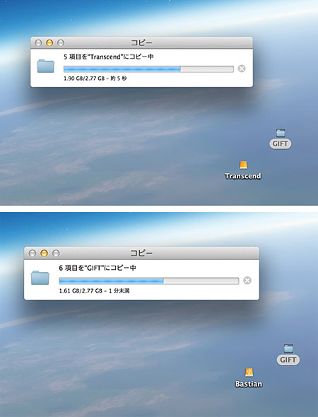 今回は、容量2.77GBのアルバムデータを、所有しているUSB2.0対応のHDDと「StoreJet 500」にそれぞれMacからコピーして、転送が完了するまでの時間をストップウォッチで計った。