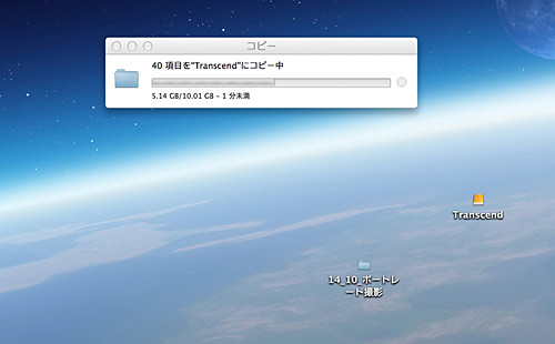 では、もう少しデータ容量を増やして、10GB前後のデータではどうだろうか。RAWデータを中心に、10GBほどの画像データをフォルダに格納して「StoreJet 500」にコピーしたところ、転送にかかった時間はたったの34秒13だった。