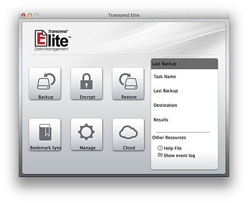 もう一つ、Mac用として便利なのが、「StoreJet for Mac」シリーズがMac OSが使っている主要ファイルシステムのHFS+にあらかじめフォーマット済みであること。Thunderboltケーブルが付属しているので、買ってすぐMacにつないで、バックアップなどの用途に利用できる。もちろん、ドライバのインストールも不要だ。さらに、トランセンドのサイトからバックアップのデータマネージメント・アプリケーション「Transcend Elite(Mac/Win両対応)」をダウンロードすれば、より簡単にバックアップなどのタスク管理ができる。