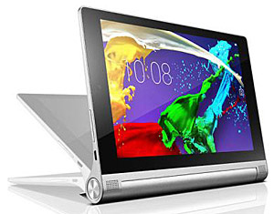 「YOGA Tablet 2-830L」は、1920×1200画素の8インチディスプレイを搭載し、ホールドモード、スタンドモード、チルトモード、ハングモードの4つのモードを利用シーンに合わせて使い分けることができる。CPUには、AtomプロセッサーZ3745(1.33GHz)を採用。2GBメモリ、16GBのストレージ、無線LAN、Bluetooth 4.0などを備える。OSは、Android 4.4。バッテリ容量は6400mAhで、駆動時間(Wi-Fi使用時)は約18時間。サイズは、幅210.0×奥行き149.0×高さ2.7~7.0mmで、重さは約429g。カラーはプラチナ。音声通話には対応していない。