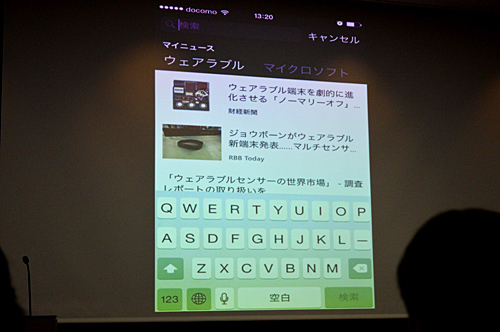 実演を交えながら紹介した「ニュース」は、近年急増しているキュレーションアプリ。新聞社やビジネス系ウェブサイトなど、信頼できるソースから幅広いジャンルの情報を提供する。「msn」独自の売りは、気になることがらをキーワード登録して、関連する記事を一覧表示する「マイニュース」機能だ。大量のニュースに目を通したいユーザーや、関心のある分野のニュースを効率よく集めたいユーザーなど、多様なニーズに応える。