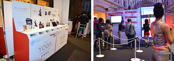 「YOGA」シリーズのタッチ&トライコーナーと「YOGA MOJI」体験ブース