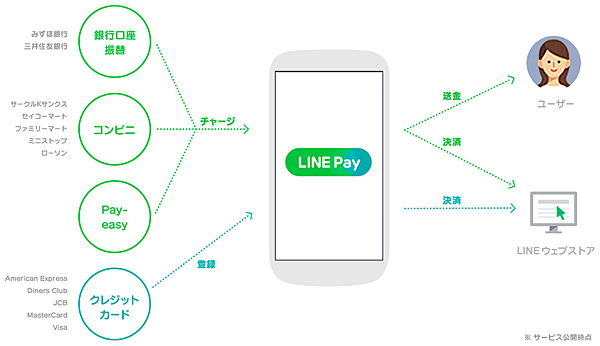 運営は、子会社のLINE Payが担当。送金・決済処理やチャージ、口座振替などの際には、LINE Payと各機関との間で連携・処理を行う。近日中にLINE Pay導入加盟店・サイト・アプリの募集を開始するほか、今後、さまざまなキャンペーンや対応サービスの拡充、オフライン店舗との提携、グローバルでの機能展開などを進め、さらに利便性を強化しながらモバイル決済の未来を提案していく。