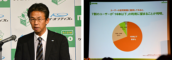 「月のデータ使用量は、7割のユーザーが1GB以下」と説明する津田グループマネージャー