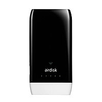「Airdisk」は、容量32GBのワイヤレスストレージとiPhone 5を2~3回フル充電することができる容量3000mAhのモバイルバッテリ、通信速度150Mbpsのポータブル無線LANルータの三つの機能を備えた多機能モバイルストレージ。専用アプリ「A+Disk」を使用することで、音楽や写真、動画を鑑賞できる。