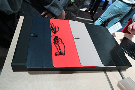 多くの来場者が手に取っていたのが、未発売の東芝製ノートPC「PORTEGE Z20t ULTRABOOK」だ。Core Mプロセッサを採用することで、スリムで軽量なボディを実現し、液晶ディスプレイを片手でらくに着脱できる。12.5インチの液晶ディスプレイは、反対向きの装着にも対応。日本国内での発表が待ち遠しいモデルだ。