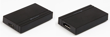 PCのUSBポートから出力した映像信号を、DisplayPortに変換するディスプレイアダプタ。PCのUSB3.0ポートに接続すれば、PCの映像出力が4Kに非対応でも4Kディスプレイに映像を表示できる。