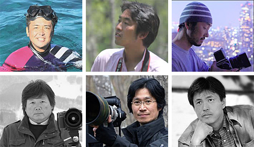 6人のプロ写真家と提携。上段左から、水中写真家の鍵井靖章氏、山岳写真家の志水哲也氏、夜景写真家の丸田あつし氏、下段左から、風景写真家の山口博之氏、自然写真家の山本純一氏
