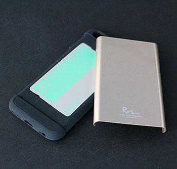 ICカード1枚を収納できるiPhone 6用カバー。カードが入っていることを感じさせない超薄型・軽量デザインで、iPhone 6との親和性を発揮する。特殊樹脂ケースでiPhone 6本体とカードをしっかりホールドし、ハードカバーでしっかりロックするハイブリッド構造を採用。特殊な電波干渉防止シートで、ICカードの読み取りエラーを防ぐ。カラーはゴールドとシルバー。