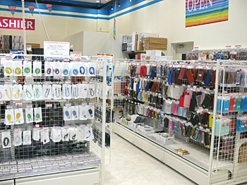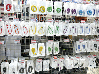 現段階で売れ筋なのはスマートフォン用のUSBケーブルで、「さまざまなカラーがあって、おしゃれなことが気に入って購入する方が多い」と、中角店長は手応えを感じている。「なかにはスマートフォン用USBケーブルを知らないお客様もおられるので、これがあればパソコンで充電できるといったメリットを説明している」ともいう。スマートフォン用USBケーブルに関しては、ファミリーだけでなく、学生や高齢者など幅広い層が購入する。ドスパライオンレイクタウンmori店が開拓しようとしている新規顧客層を着実に獲得しているわけだ。