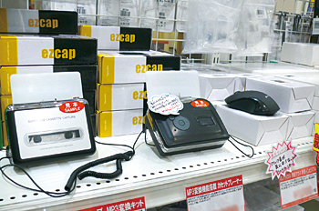 来店者がデジタル雑貨に興味をもつように工夫しているのが、商品の展示方法だ。各コーナーには箱から出したそれぞれのアイテムが置いてあって、「実際に手に取って試していただけるようにしている」(中角店長)。しかも、どのようなアイテムなのかがわかるように手書きのPOPでアピールしている。