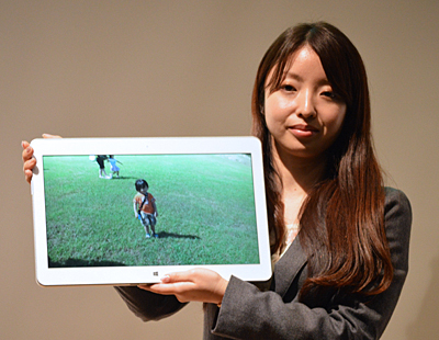 また、温度変化から人を検知する人感センサを搭載し、周囲に人が近づくだけでPCが起動する。省エネ設計なので、待機状態が長くても消費電量は少ない。ディスプレイの厚さは約9.8mm、重量は約980gで、タッチパネルの同型ディスプレイとしては世界最薄・最軽量。CPUやストレージを本体に集約することで、スリム化に成功した。