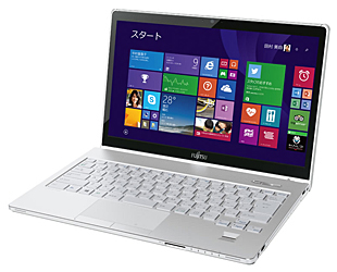 「LIFEBOOK SH90/T」は、タッチパネル式の13.3型WQHD(2560×1440ドット)IGZO液晶を搭載したスタミナモバイルPC。約14時間の長時間駆動で、外出先で一日中利用することができる。超圧縮ソリッドコア構造の堅牢ボディは、持ち歩きに最適だ。