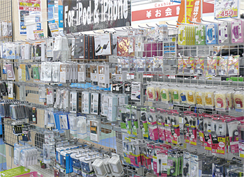 小物ではスマートフォン関連アクセサリの販売も順調だ