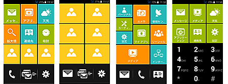 独自のユーザーインターフェース「Quick Mode」を採用。ホームスクリーンは「シニアモード」「ベーシックモード」「クラシックモード」「キーパッドモード」の4種類から選択できる。