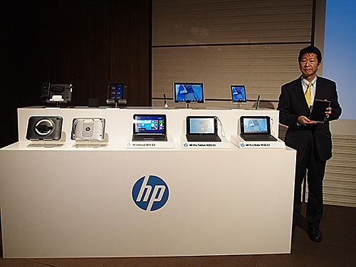 日本HPが一挙に投入するタブレット端末8製品と岡隆史副社長執行役プリンティング・パーソナルシステムズ事業統括