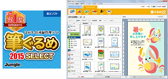 ジャングル、ダウンロード版のハガキ作成ソフト「筆ぐるめ 2015 select」
