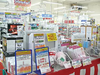 常連客が定期的に来店することに加え、近所の住民も来店するケースが多い。山下店長は、「それは、あると便利な日用品を多く揃えているから」という。例えば携帯電話やデジタルカメラなどに対応したマルチ充電器、PCやエアコンの掃除に便利なエアダスターなどを販売している。また、USBひざ掛け毛布などの季節用品も用意している。お菓子やペットボトルなど、食料品も充実している。山下店長は、「用途が一目でわかる商品があることを認識していただき、お客様が気軽に来店できる環境を整えている」としている。日用品は、店舗の入口近くで、しかもレジの近くに置いている。自作PCユーザーがPCパーツなどの買い物ついでに購入するので、「客単価を上げることにつながっている」とのことだ。
