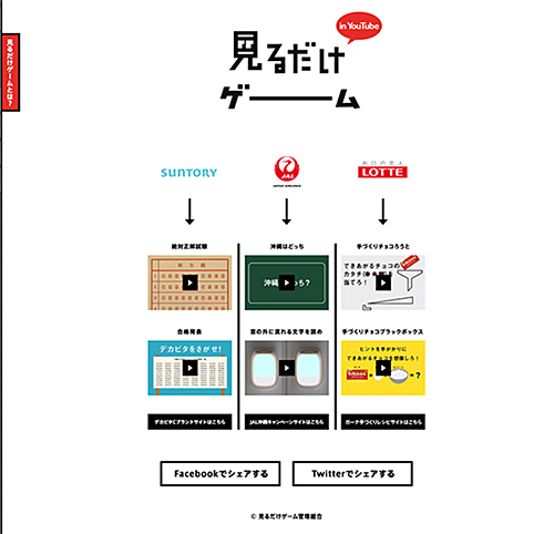 サントリー食品インターナショナル「デカビタC」、日本航空(JAL)「沖縄キャンペーン」、ロッテ「ガーナ・手づくりバレンタイン」の3社・3ブランドは、YouTubeの動画広告枠を使った新しい試み「見るだけゲーム in YouTube」を開始した。2月28日まで。