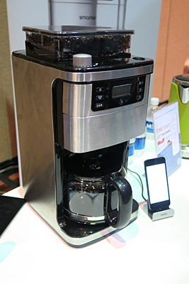 ネット接続に対応した家電製品を数多く手がけるベルキンは、スマートフォンから制御できるコーヒーメーカーを出品した。豆を挽くところから全自動で制御し、寝室にいながらコーヒーがいれることができる。