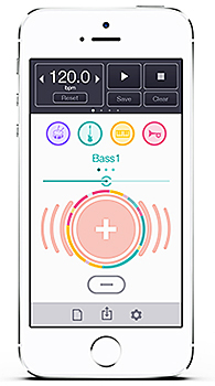 スタートボタンを押し、4回振ってテンポを決めるとリズムのループが始まり、リズムに合わせてiPhoneを振ると、そのタイミングでループに音が追加されていく。ドラム、ベース、楽器1、楽器2の4種類の楽器に切替えができ、それぞれに音を追加していくことができる。各楽器の音色を切り替えながら演奏することもできる。