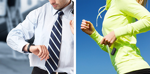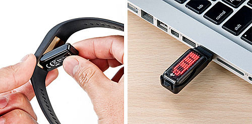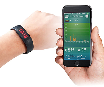 対応機種は、iOS 5.1以降を搭載するiPhone 6Plus/6/5s/5/4s、iPod touch(第5世代)。連続使用時間は最大7日間。付属の充電用USBソケットを装着し、USBポートから充電できる。本体のコア部分は、取り外してリストバンドとして使用したり、付属のクリップケースを使って衣服へ取りつけたりできる。コアのサイズは幅36×高さ10×奥行き15mmで、重さは約6g。ベルトサイズは17~22cm。