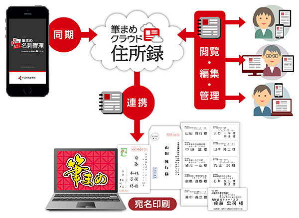 「筆まめクラウド住所録」と同期することで名刺の情報を共有できる