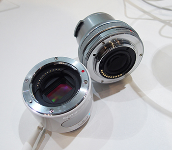 力が入った新製品を投入したのはオリンパス。撮像素子を磁力で浮かせてコントロールすることで、5段分の手ブレ補正ができる「5軸VCM手ブレ補正機能」を搭載した「OM-D E-M5 MarkII」が目玉だ。開発本部の鈴木隆副本部長によれば、「CIPA(カメラ映像機器工業会)の基準では5段相当の手ブレ補正効果だが、利用シーンによってはそれよりさらに大きな効果が期待できる」という。また、人だかりが絶えなかったのが、レンズスタイルのレンズ交換式カメラ「AIR」だ。すでにソニーが同様の製品を販売しているが、このカメラはマイクロフォーサーズ規格で、既存の豊富なレンズ群をそのまま使うことができる。そのうえ、オリンパスの技術をオープンにする「OPC Hack & Make Project」で、クリエイターやユーザーといっしょに新しい使い方を模索していくという試みが新しい。会場には、先立って開発に加わったユーザーのアイデアを採り入れたカメラの遠隔操作システムなどが展示されていた。