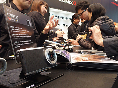 パナソニックで人気だったのは、デジタルカメラとスマートフォンが融合した新スタイルのコンパクトカメラ「LUMIX CM1」だ。昨年ドイツで開催されたフォトキナで発表されたモデルだが、欧州でのテスト販売を経て、いよいよこの3月、2000台限定ながら日本でも発売される。1型の本格的な撮像素子を搭載したカメラと、4.7型のモニタを備えたSIMロックフリーのAndroidスマートフォンを合体させた製品だ。大きなセンサを搭載しているので、他のスマートフォンよりも高画質でボケ味を楽しむ撮影もできる。スマートフォンつきカメラという新しいジャンルを切り開く製品だ。