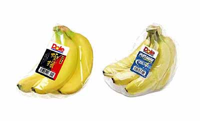 東京マラソン2015公認のバナナ「極撰」(左)と「スポーツバナナラカタン」