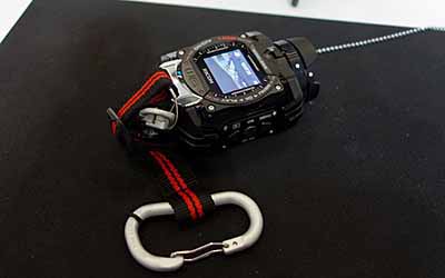 このほか、電子コンパスやGPS、デジタル顕微鏡、14m防水、高い耐衝撃性などの機能を備えた、ヘビーデューティー志向が強い「WG-5GPS」なども展示していた。こちらも豊富なマウントをオプションとして用意しており、サーフボードやスノーボード、自転車のハンドルやクルマのダッシュボード、手首、ヘルメットなどさまざまな場所に取り付けて使うことができる。