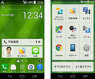 従来型携帯電話のような操作を実現する「エントリーホーム」画面