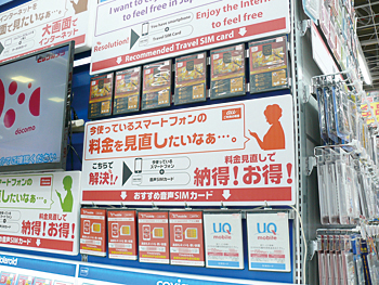 顧客の“気になる”を解決するサービスとして力を入れているのがSIMカード関連。江澤館長は、「SIMフリーになったものの、どれを購入すればいいのかがわからないというお客様は多い。そのような悩みを解決するために、用途別に商品を展示しているほか、当店で作成したPOPによって、お客様に理解していただけるようにした」という。SIMカードのことなら何でも聞くことができる相談窓口も設置。「悩みが解決できるということで、好評価をいただいている」(江澤館長)とのことだ。