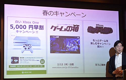 また、2014年末に発売した「Xbox One」も春商戦を見据えて、白色のXbox OneとXbox One Wireless Controller、「Halo: The Master Chief Collection」を同梱した「Xbox One スペシャル エディション」を5000円割り引く「白いXbox One 5,000円早割キャンペーン」を実施する。期間は3月1日まで。