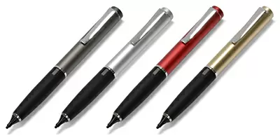 電源は単4形電池×1本で、動作時間は最大約8時間。ペン先サイズは約1.9mm。サイズは、長さ約136mm×グリップ部直径約9~12mm。電池を除いた重さは約16g。カラーは、ダークシルバー、シルバー、レッド、ゴールドの4色。先に行くほど細くなっていくテーパード形状のラバーグリップを採用し、しっかりとホールドすることが可能。長時間使用しても指や手が疲れにくい。