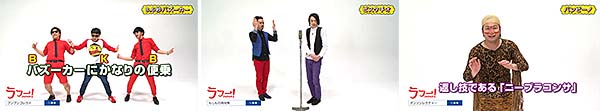 左から、「天津木村」「シソンヌ」「バイク川崎バイク」