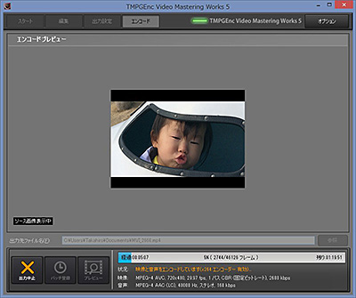「TMPGEnc Video Mastering Works 5」を使ってフルHDファイルを720×480ドットのMPEG4動画に変換